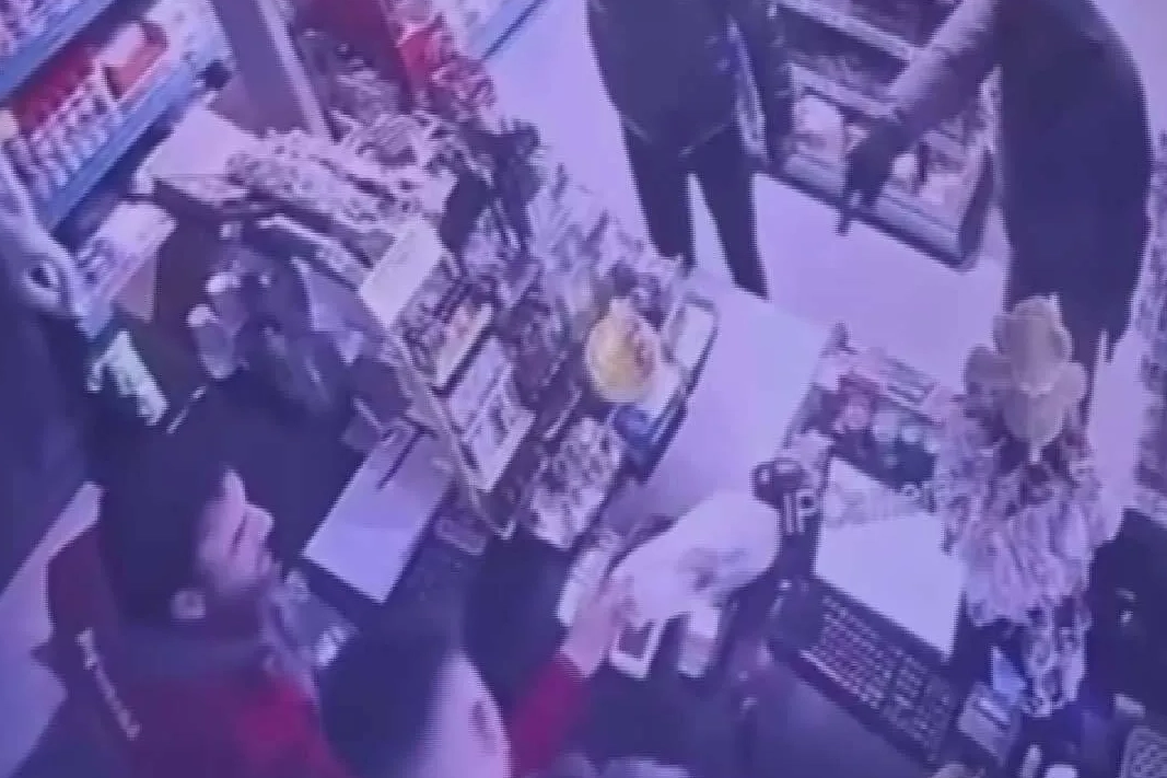 Soygun anı, iş yerinin güvenlik kamerası tarafından saniye saniye kaydedildi.