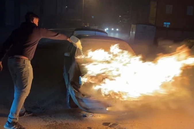 İhbar üzerine olay yerine polis, itfaiye ve sağlık ekipleri sevk edildi. Polis ekipleri sürücü ve arkadaşını bölgeden uzaklaştırarak sakinleştirmeye çalıştı.