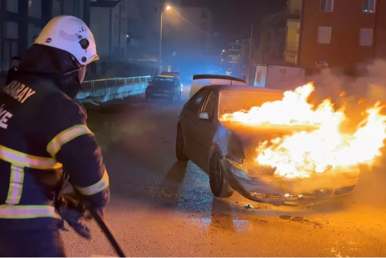 Sürücü ve arkadaşı olay yerine gelen polis ekiplerince uzaklaştırılarak sakinleştirilmeye çalışıldı. İhbar üzerine olay yerine itfaiye ve sağlık ekipleri sevk edildi. İtfaiye ekipleri adeta alev topuna dönen aracı müdahale ederek söndürdü. Yarım saat süren çalışmayla araçtaki yangın tamamen söndürülürken, araç kullanılmaz hale geldi. İtfaiye ve polis yangının çıkış nedeni hakkında inceleme başlattı.