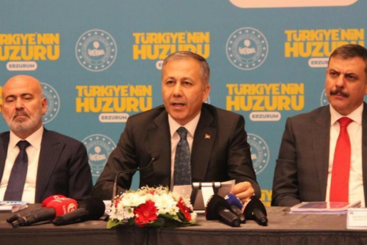 Polis okulunun mezuniyet törenine katılmak üzere Erzurum'a gelen İçişleri Bakanı Ali Yerlikaya, temaslarının ardından güvenlik toplantısı gerçekleştirdi. Huzur ve güvenlik toplantılarını şehir şehir gezerek yaptıklarını ifade eden İçişleri Bakanı Ali Yerlikaya, "Şehirlerimizin huzur ve güvenliğini, yetkili tüm arkadaşlarımızla masaya yatırıyoruz. Bu toplantılarla vermek istediğimiz mesaj şudur; Türkiye Yüzyılı'nda teröre, onların iş birlikçilerine, zehir tacirlerine, organize suç örgütlerine suçta kibirlenenlere yer yoktur. Erzurum'dan bir kez daha ifade ediyorum; kim olursa olsunlar, kendini hukukun üstünde gören, kamu düzenimizi bozmaya çalışan tüm yapılanmaları çökertip adalete teslim edeceğiz" dedi.