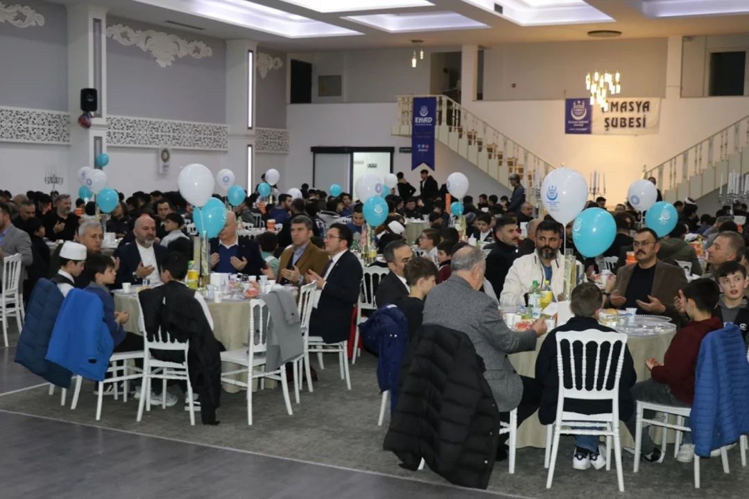 Amasya İl Müftülüğüne bağlı Kur'an kurslarında ve üniversitede eğitim gören 600 hafız bir düğün salonunda düzenlenen programda iftar yaptı.
