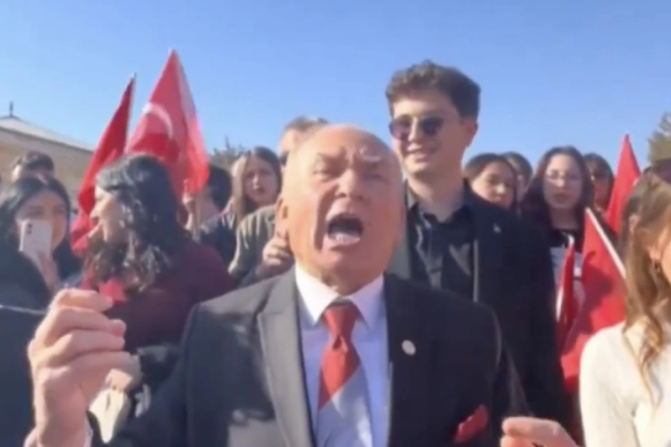 Anıtkabir'de sesi benzeyen şahsı gören gençler hemen etrafına toplanıp yoğun ilgi gösterdi.