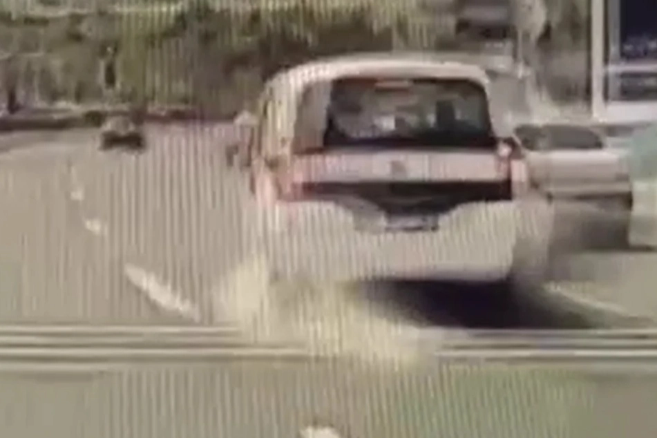 Yaşanan kaza, caddede ilerleyen başka bir aracın kamerasına anbean yansıdı.
