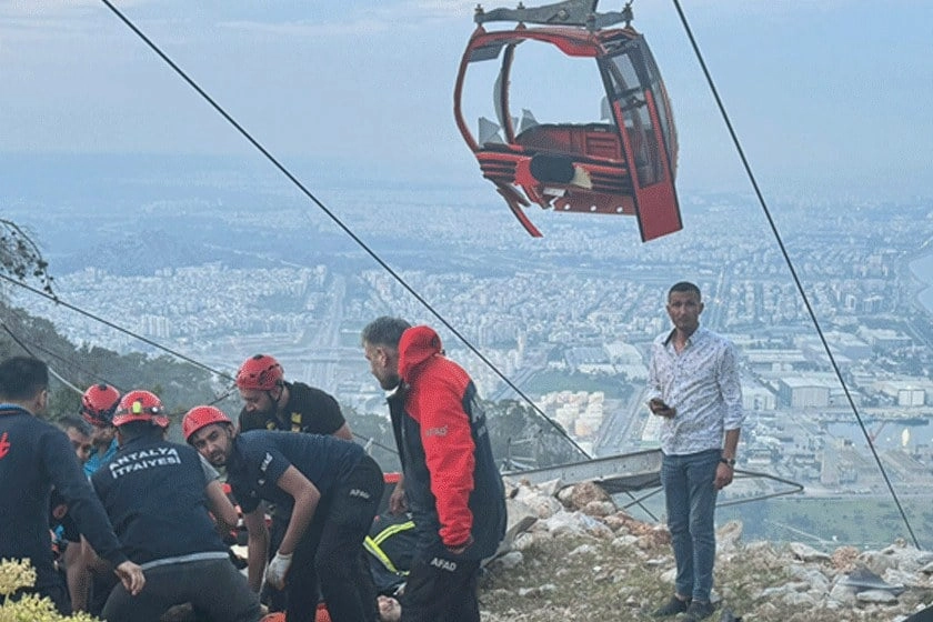 Antalya'nın Konyaaltı ilçesindeki Tünektepe Teleferik Tesisi'nde direklerden birisinin devrilmesi sonucu teleferik kazası yaşandı.