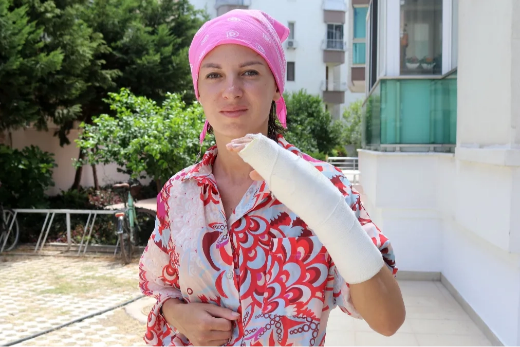Komşuların durumu sağlık ekibine haber verdiğini belirten Iryna Melnychuk D., "O halde ben KADES'e bastım, komşularım da ambulansı çağırdı. Ambulans beni Antalya Eğitim ve Araştırma Hastanesine kaldırdı. 21 Temmuz'a kadar hastanede kalıp tedavi gördüm. Ameliyat yapıldı, dikişler ve zımbalar var. Pazartesi kafamdaki yaralardan dolayı ameliyat olacağım. Kapanması zor yaralar var" diye konuştu.