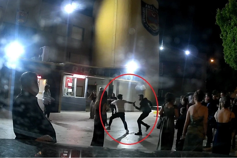 Antalya’nın Kepez ilçesi Yenidoğan Mahallesi’ndeki Antalya Şoförler Odası Düğün Salonu önünde, kına gecesi sona ererken yaşanan bir egzoz gürültüsü tartışması büyük bir kavgaya dönüştü. Saat 23.15 sıralarında, damat ve gelinin içinde bulunduğu araç, salon önünden ayrılmak üzereyken yüksek sesle çalışan modifiyeli egzozuyla çevredekilerin dikkatini çekti.