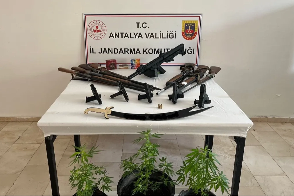 Operasyonda evlerde yapılan aramalarda 5 adet ruhsatsız 9 mm tabanca, 6 adet tabanca mermisi, 8 adet av tüfeği, 100 adet av tüfeği fişeği, 6 adet şarjör, 1 adet kılıç ve 3 kök kenevir bitkisi ele geçirildi.