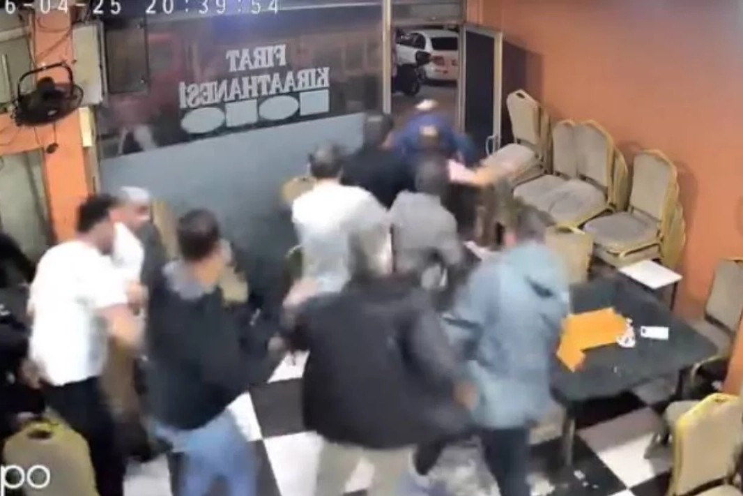 Kahvehanenin güvenlik kamerasına yansıyan görüntülerde, deprem olduğunu düşünen müşterilerin masa ve sandalyeleri devirip panikle dışarı kaçtıkları anlar yer aldı.