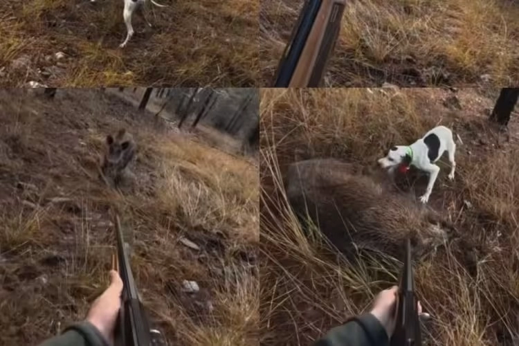 Avcı Öncüt'ün kask kamerasına yansıyan görüntülerde, köpeğin çalılık alanda ferma vermesi, hemen ardından yaban domuzunun aniden ortaya çıkarak koşması ve avcının panik içinde ateş açtığı anlar yer aldı.