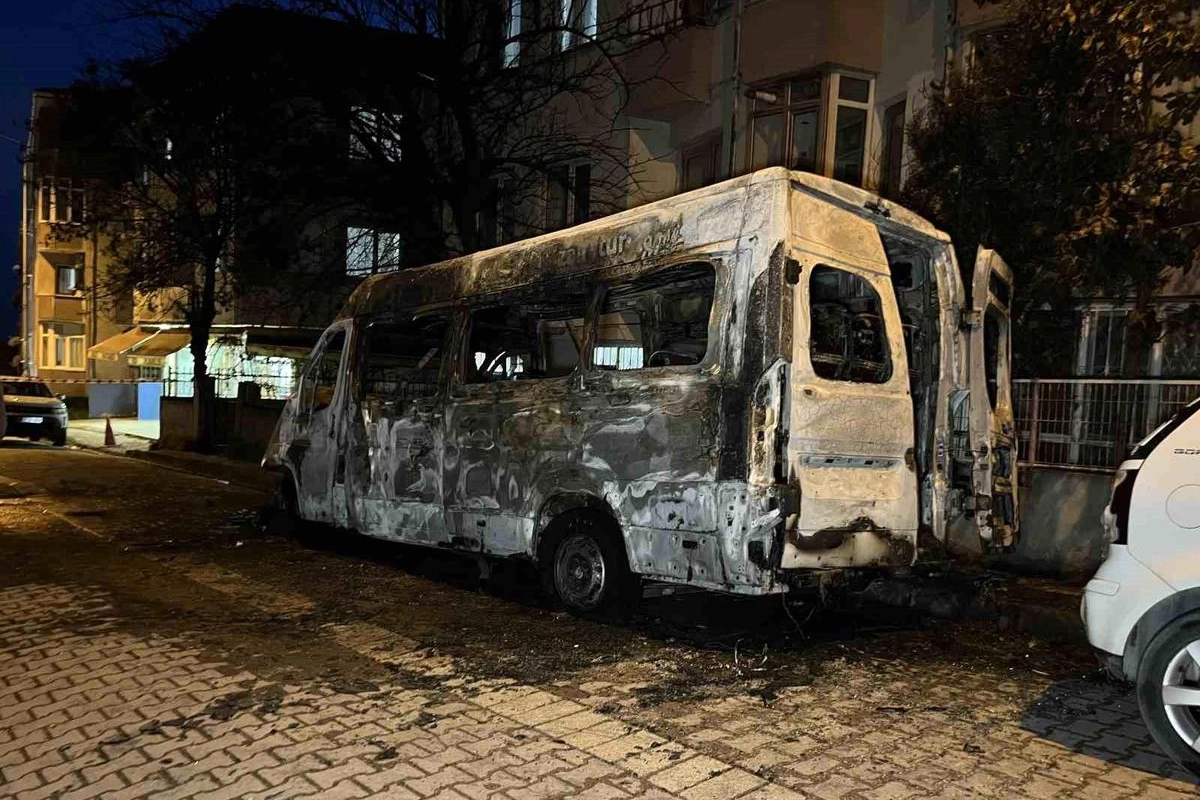 Avcılar'da park halindeki servis aracı alev alev yandı. Yangın itfaiye ekiplerince söndürülürken, o anlar cep telefonu kamerasına anbean yansıdı.