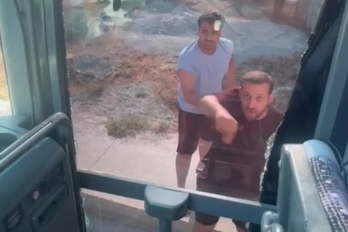 Daha sonra otomobildekiler otobüsün önünü kesti.