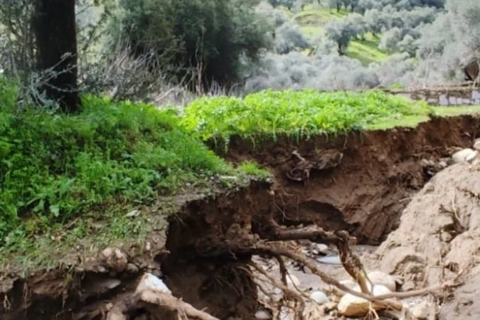 Bahçe yollarında büyük çukur ve yarıklar oluşurken, toprağın aşınması sonucu yeni bir su kanalı meydana geldi. Yer yer iki insan boyuna ulaşan yarıklardan akan sular, bahçelere ulaşımı güçleştirdi.