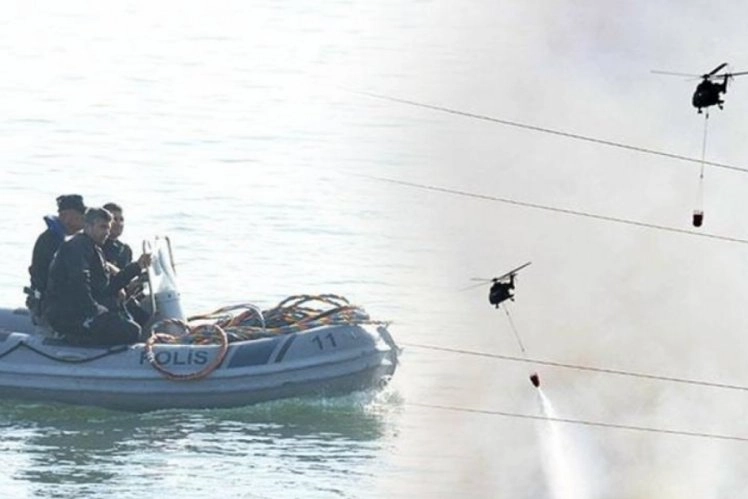 Yangın söndürme çalışmaları aralıksız devam ederken, havanın kararmasının ardından gece görüşlü yangın söndürme helikopterleri de müdahaleye başladı. Saat 23.53'te içerisinde 3 Kırgızistan uyruklu, 1 Türk mürettebat Mehmet Akif Tutuk'un olduğu gece görüşlü yangın söndürme helikopteri, henüz bilinmeyen bir nedenle müdahalede kullandığı suyu aldığı Tahtalı Barajı'na düştü. Bölgeye polis, jandarma, itfaiye, sahil güvenlik, AFAD ve UMKE ekipleri sevk edildi. Düşen helikopter enkazı ve mürettebat için olayın ardından arama-kurtarma çalışması başlatıldı. 4 mürettebattan Kırgızistan uyruklu 1 kişi kendi imkanlarıyla yüzerek karaya çıkarken, tedavisi için hastaneye kaldırıldı, sağlık durumunun iyi olduğu bildirildi.