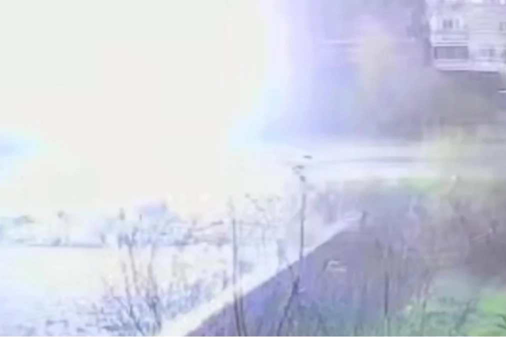 Ağaca yıldırım düştüğü an yakındaki bir iş yerinin güvenlik kamerasına yansıdı.