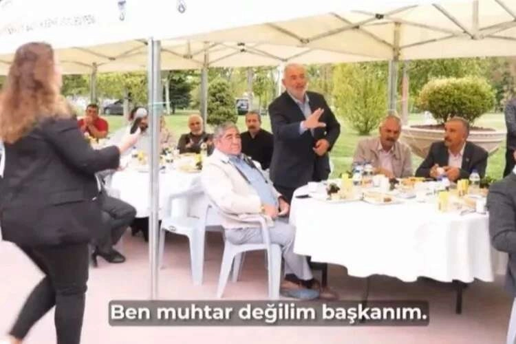 Konuşmak için ayağa kalkan kişiye "Muhtarım otur" Yavaş, "Ben muhtar değilim başkanım" cevabını aldı. Yavaş'ın "Değilsen de otur" dediği vatandaş, "Başkanım siz de ayaktaydınız bizim oturmamız olmuyor. Siz de yoruldunuz başkanım." şeklinde yanıt verdi.