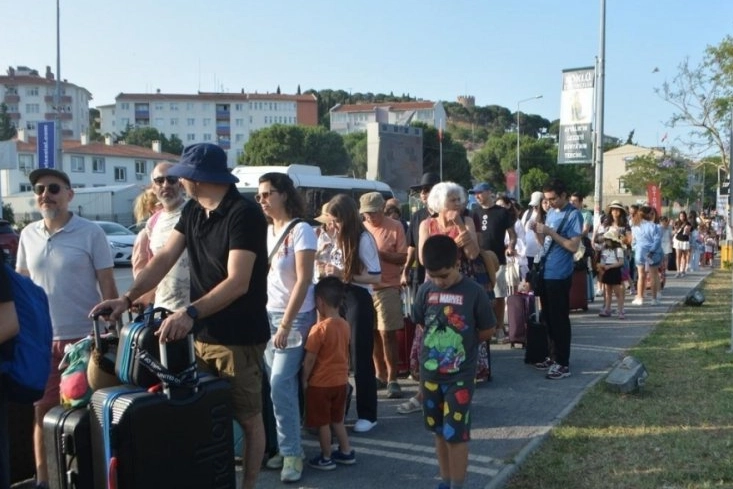 Ayvalık Deniz Hudut Kapısı'na gelen tatilciler, işlemlerin ardından Midilli'ye geçmeye başladı.