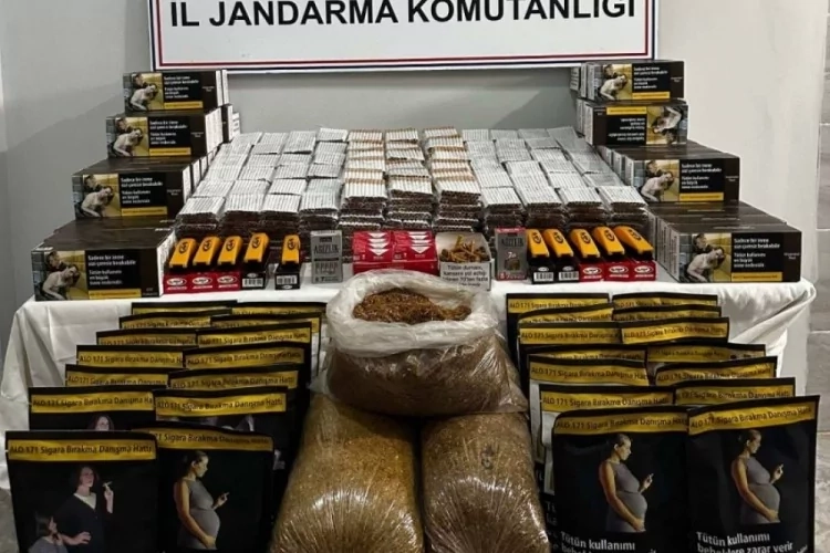 Bilecik İl Jandarma Komutanlığı ekipleri tarafından Pazaryeri ilçesi Kınık köyü yakınlarında şüphe üzerine durdurulan bir araçta arama yapıldı. Yapılan aramada; 20 bin 100 adet doldurulmuş makaron, 12 kilogram kıyılmış tütün, 1 adet dijital terazi, 10 bin adet boş makaron, 5 kilogram kaçak çay, 54 adet 100 gramlık kapalı tütün (5,4 kilogram), 125 adet sigara ağızlığı, 15 adet el tipi sigara sarma makinesi ve 112 adet tütün sarma kâğıdı ele geçirildi.