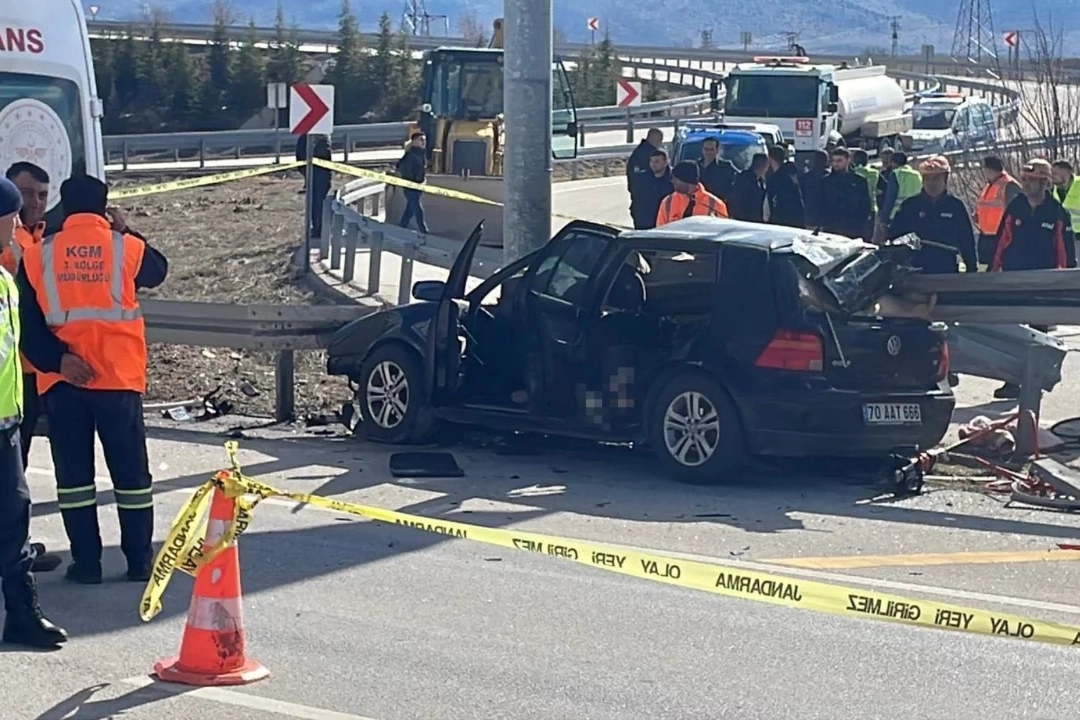 Kaza, Karaman-Konya karayolunun 31. kilometresi Kazımkarabekir ilçesi yakınlarında meydana geldi. Edinilen bilgiye göre, Ali Günay (43), yönetimindeki 70 AAT 666 plakalı Volkswagen marka otomobil sürücüsünün direksiyon hakimiyetini kaybetmesi sonucu kontrolden çıkarak yol kenarındaki demir bariyerlere ok gibi saplandı. Diğer sürücülerin ihbar üzerine kaza yerine sağlık, itfaiye, AFAD, polis ve jandarma ekipleri sevk edildi.