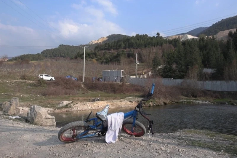 Çaygökpınar köyü mevkiinde Tanju Kara, bisikletini yol kenarında bırakıp, arkadaşıyla birlikte etrafı beton bloklarla kapatılan ve girilmesi yasak olan gölete girdi.