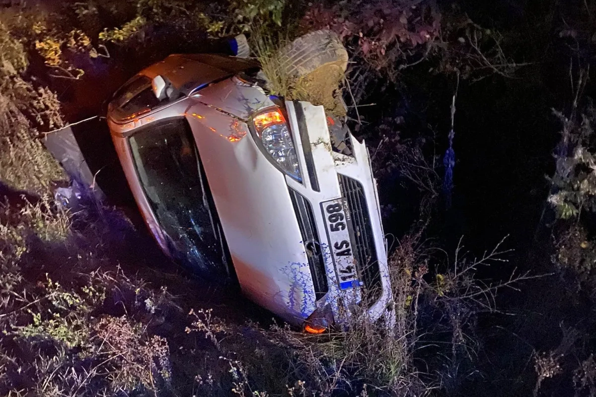 Edinilen bilgiye göre, Emre A. idaresindeki 14 AS 598 plakalı otomobil, sürücüsünün direksiyon hakimiyetini kaybetmesiyle kontrolden çıkarak takla attı.