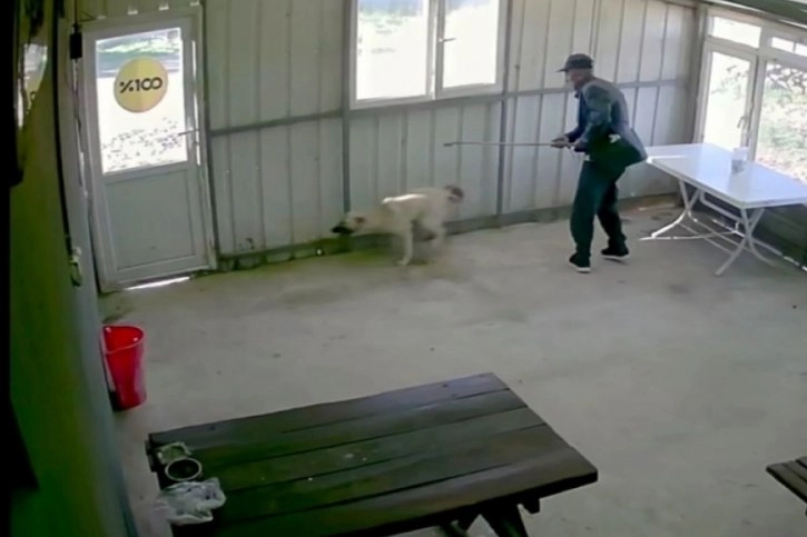 Köy kahvesinde bakılan 5 aylık köpeği bastonuyla dövdü. Köpeğini kanlar içerisinde bulan Özen, olayın ardından iş yerinin güvenlik kamera kayıtlarını inceledi.