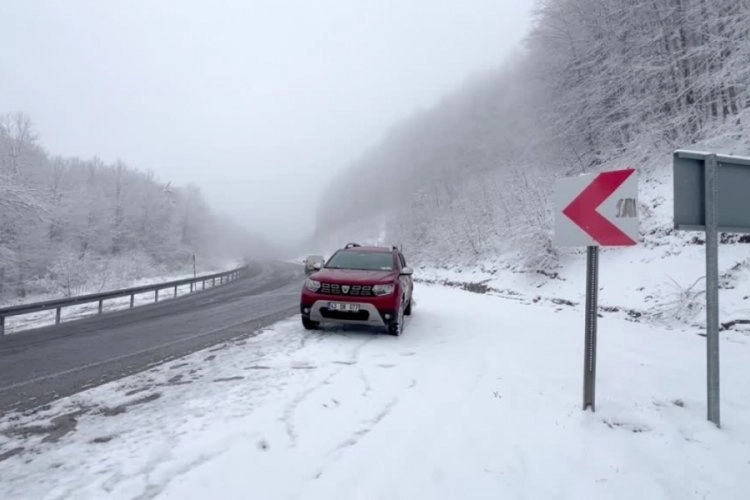 Domaniç ilçesi ile Bursa'nın İnegöl ilçesini birbirine bağlayan kara yolunda kar yağışı etkili oluyor.