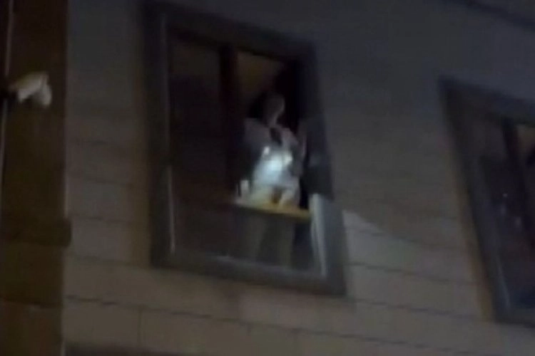 Kadın, caminin üst katına çıkarak camdan bağırmaya başladı.