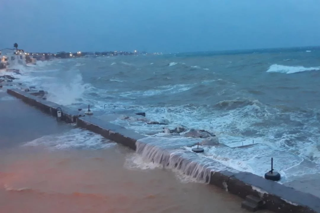 Küçükkuyu beldesi Sahil Mahallesi'nde fırtına nedeniyle deniz seviyesinin yükselmesi üzerine kordon boyu sular altında kaldı.