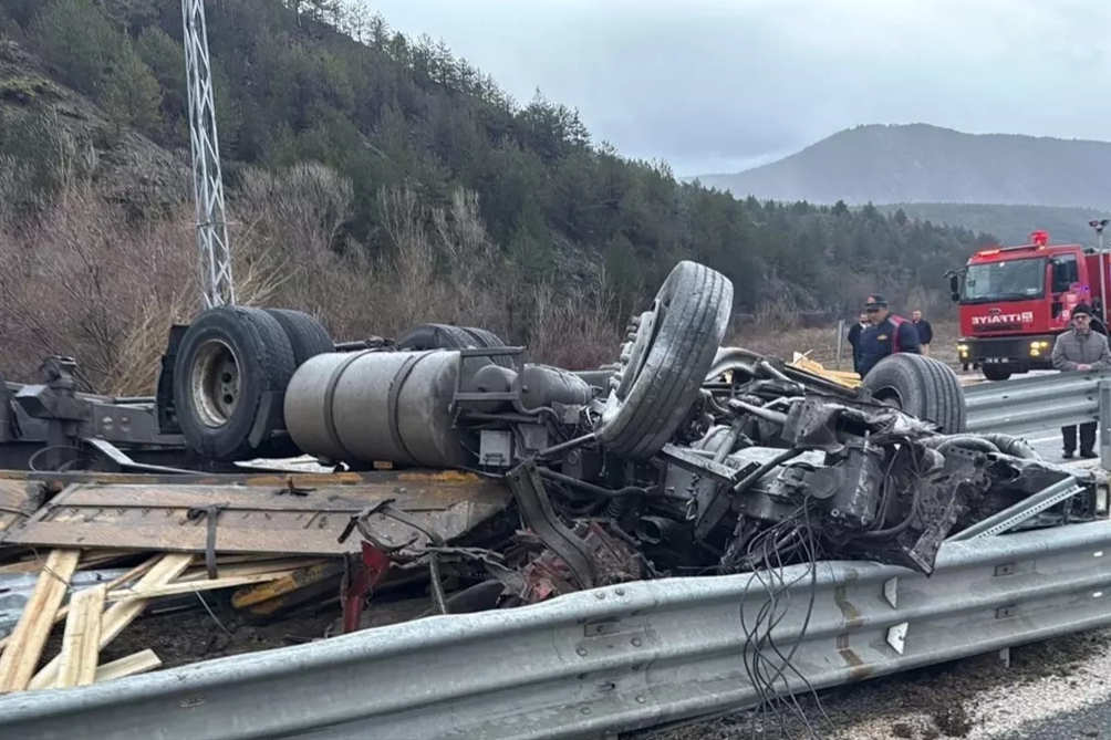 Çankırı'da şarampole devrilen tırın sürücüsü öldü.