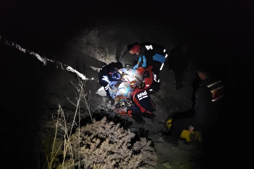 Bölgeye giden ekipler, çelik halatlar yardımıyla kayalıklardan aşağı sarkarak yaralıya ulaştı.