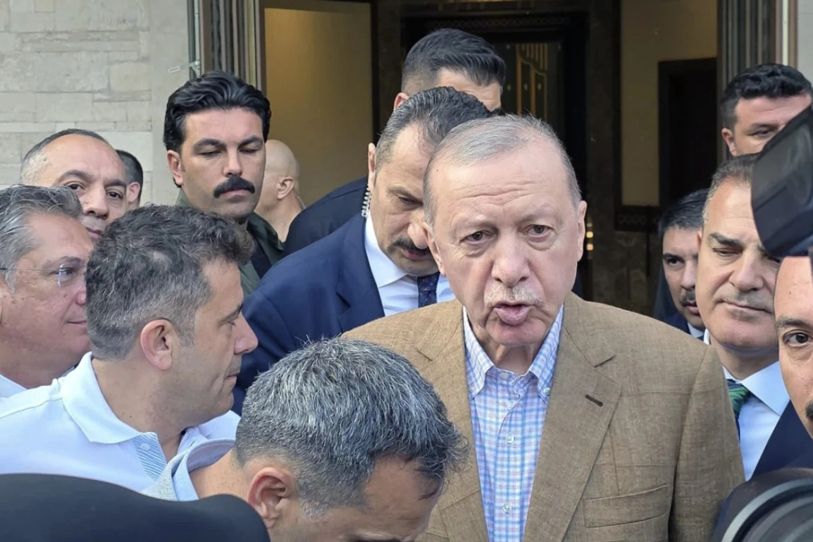 Erdoğan, bayram namazı sonrası cami avlusunda kısa bir süre vatandaşlarla bayramlaştı.