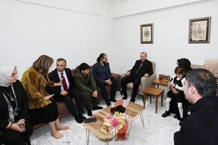 Cumhurbaşkanı Recep Tayyip Erdoğan, Gaziantep'te Güneyşehir 5 bin 113 konut anahtar ve tapu teslim törenine katıldı. Törende halka hitap eden ve anahtar ile tapu teslimi yapan Cumhurbaşkanı Erdoğan, daha sonrasında depremde 2 çocuğunu kaybeden depremzede aileye misafir oldu.