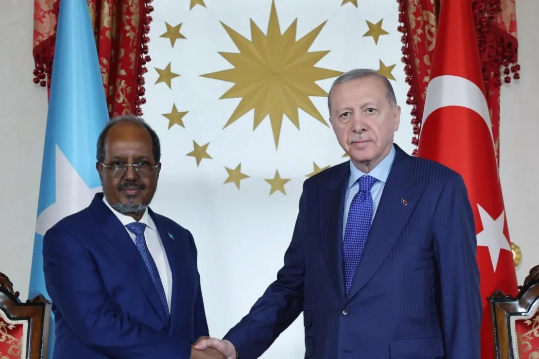 Erdoğan, Somali Cumhurbaşkanı Mahmud'u, Cumhurbaşkanlığı Dolmabahçe Ofisi'nde resmi törenle karşıladı.