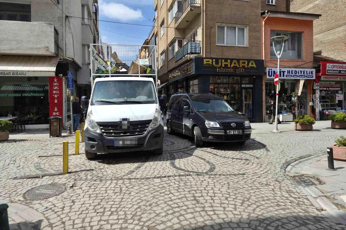 Odunpazarı ilçesi İstiklal Mahallesi Demirciler Sokak üzerinde bir kamyonet, sokak üzerine kurallara aykırı şekilde park ederek yolun büyük bir kısmını kapattı. Dar olan sokakta, hatalı park nedeniyle araç geçiş mesafesi iyice daraldı. Sürücüler daralan yolda ilerlemekte zorluk çekti.
