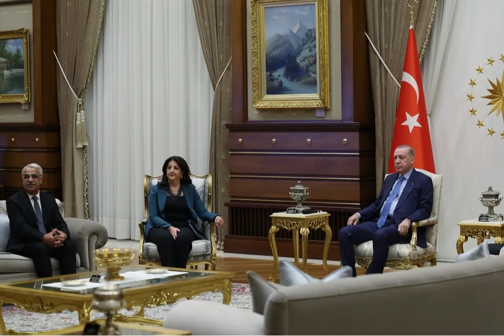 10 Nisan'da Van Milletvekili Pervin Buldan ve yaşamını yitiren TBMM Başkanvekili ve İstanbul Milletvekili Sırrı Süreyya Önder’den oluşan DEM Parti İmralı Heyeti, Cumhurbaşkanı Erdoğan ile Beştepe’de bir araya geldi.