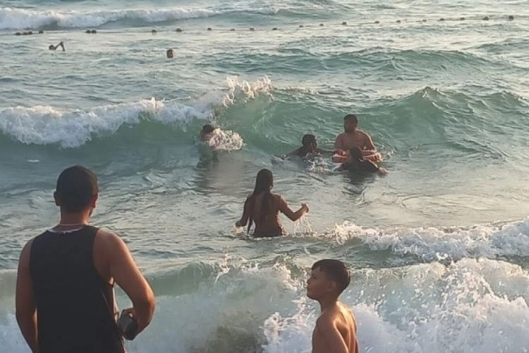 Denizde 3 kız çocuğun çırpınmasını fark eden Hatay Büyükşehir Belediyesi İtfaiye Daire Başkanlığı cankurtaran ekibi, denize girerek kurtarma çalışması başlattı.