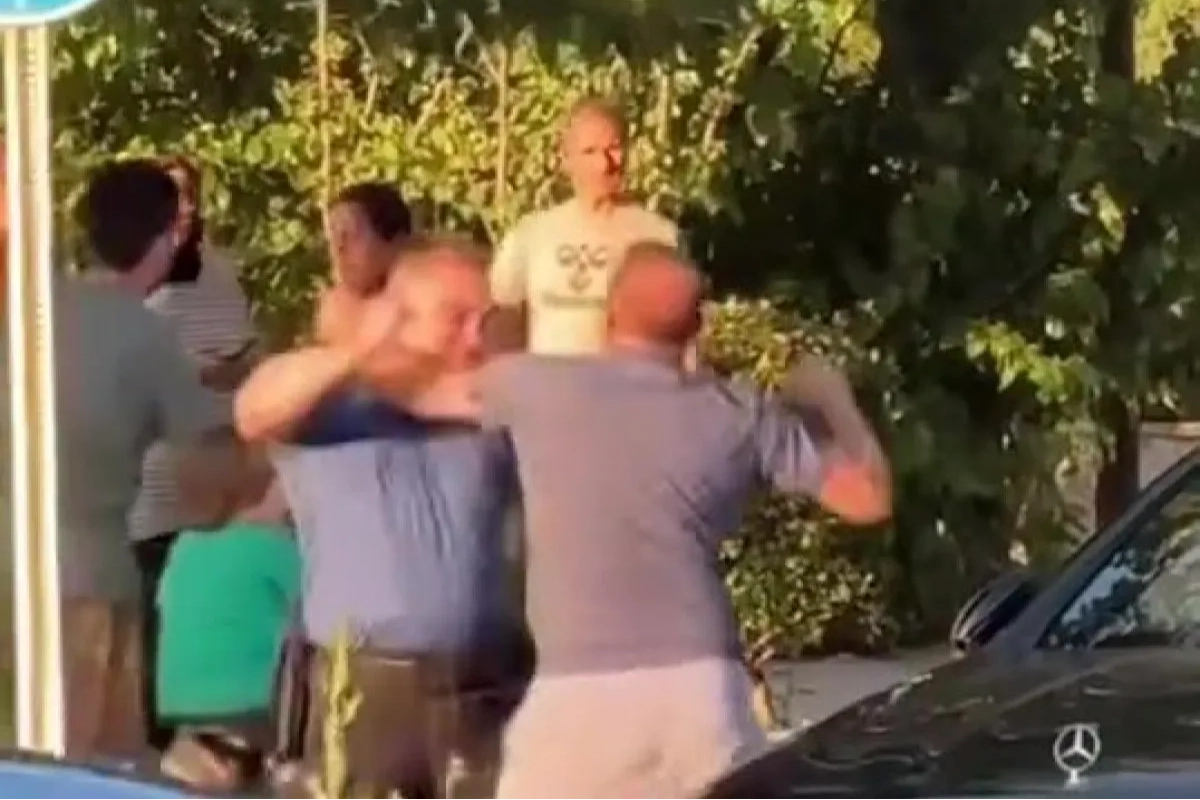 Yumrukların havalarda uçuştuğu sokak kavgasında o anları görenler de büyük şaşkınlık yaşadı.