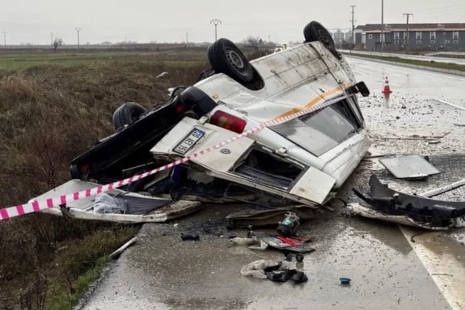Denizli’nin Çivril ilçesi Denizli-Uşak karayolunda, sürücü R.E. yönetimindeki 20 AET 151 plakalı transit araç, yağış sonrası kayganlaşan yolda kontrolden çıkarak taklalar attı.