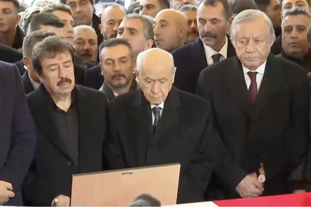 Cenaze törenine katılan Bahçeli, tabutun başında dua etti ve usta sanatçının oğluyla kısa bir konuşma yaparak taziyelerini de iletti. Bahçeli'nin bu anlarda da bir hayli üzgün olduğu görüldü.