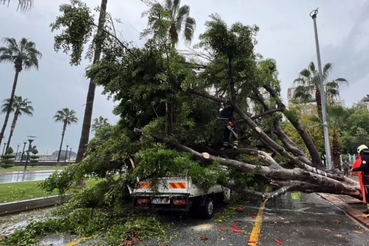 Olay, sabah saatlerinde merkez Akdeniz ilçesi İsmet İnönü Bulvarı üzerinde meydana geldi. Kaldırımda bulunan ağaç, yağmur nedeniyle kökünden sökülerek devrildi. Düşen ağaç, seyir halindeki 33 M 1055 plakalı yolcu minibüsü, 33 AUH 517 plakalı açık kasa kamyonet ve 33 BCY 104 plakalı otomobilin üzerine düştü. Devrilen ağacın altında kalan kamyonet kullanılamaz hale gelirken, minibüs ve otomobilde maddi hasar oluştu.