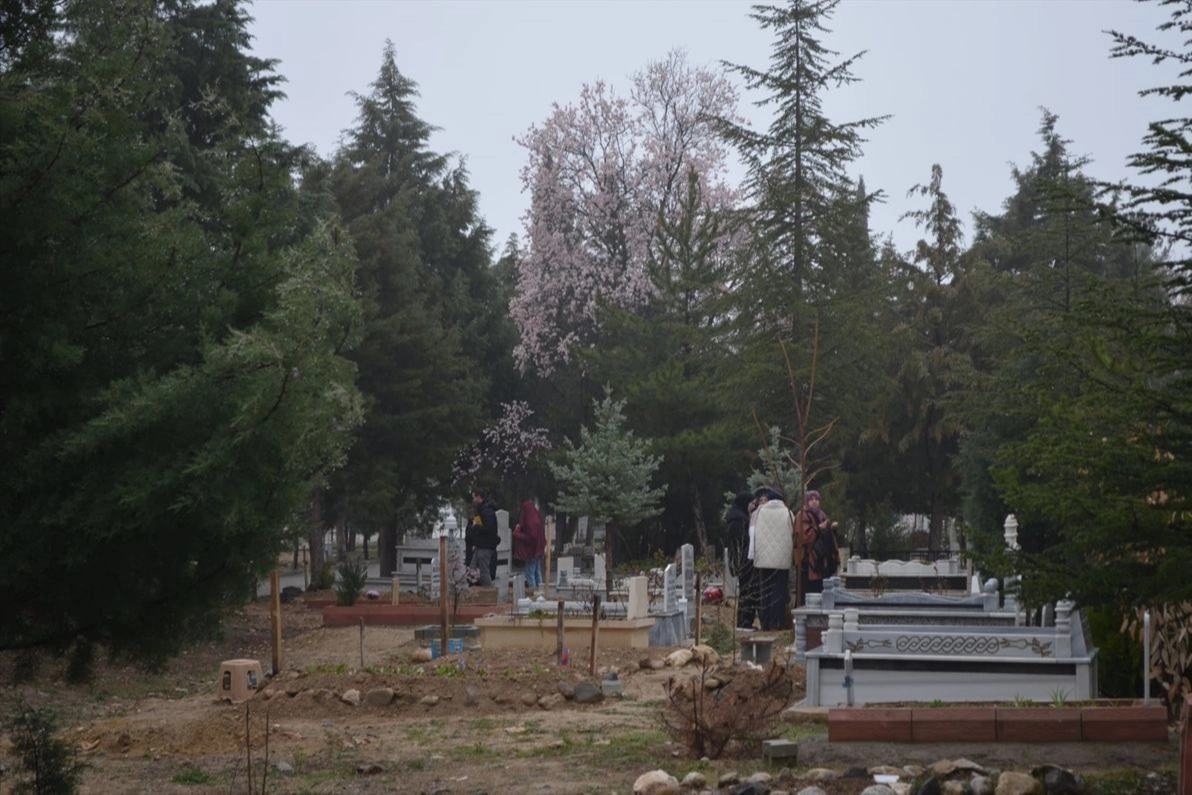 İlçe merkezindeki mezarlıklarda yoğunluk oluşturan vatandaşlar, yağışlı havaya rağmen kabir başında Kur'an-ı Kerim okuyarak dua etti.
