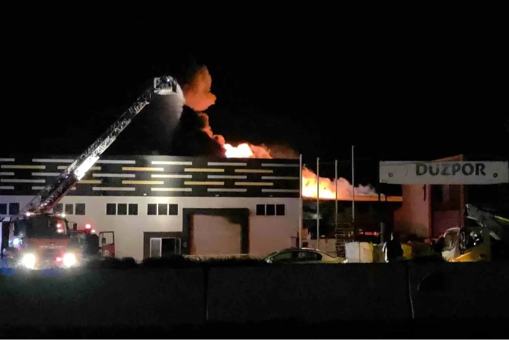 Düzce'de strafor üretimi yapan fabrikada yangın çıktı. Bölgede etkili olan rüzgar alevlerin kontrol altına alınmasını zorlaştırırken, D-100 karayolu her istikamete trafiğe kapatıldı.