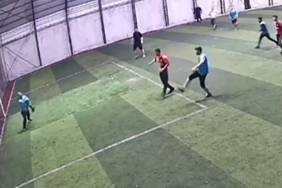 Olay, halı sahanın güvenlik kamerasınca kaydedildi.