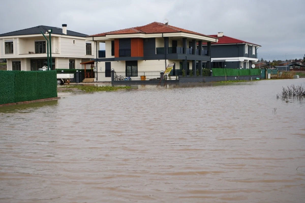 Edirne'de etkili olan sağanak yağış sonrası lüks villaların bulunduğu bölgede su baskını yaşandı.