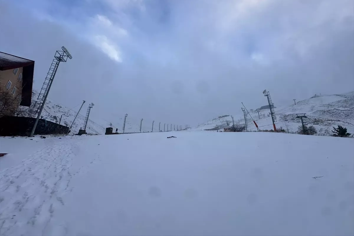 Palandöken Dağı'nın zirvesi beyaza bürünürken, kar yağışı yüksek kesimlerde aralıklarla devam ediyor.