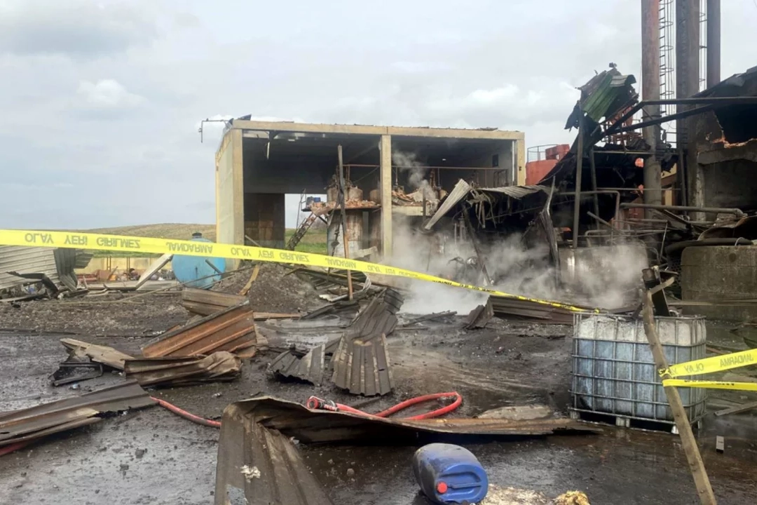 Güvenlik şeridiyle kapatılan fabrikada, ekiplerin incelemesi sürüyor.