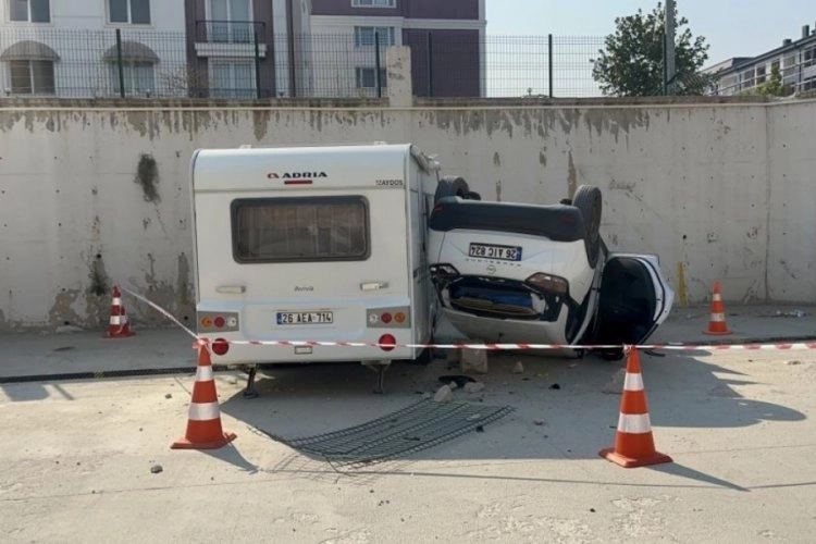 Kaza, Eskişehir Vadişehir Mahallesi Özlem ve Adalet caddeleri kesişimindi meydana geldi. Edinilen bilgilere göre, direksiyon hâkimiyetini kaybeden A.Ç. isimli kadın sürücü, 26 AIC 824 plakalı SUV aracı ile Özlem Caddesi üzerinde seyir halindeyken, henüz bilinmeyen bir nedenle direksiyon hâkimiyetini kaybetti. Kontrolden çıkan araç yolun kenarında bulunan bir sitenin çitlerini ve beton bloğu kırarak kot farkından dolayı 5 buçuk metre yükseklikten düştü. Sitenin bahçesine ters dönmüş bir şekilde düşen araç, düşüş esnasında orada park halinde olan bir karavana çarptı. Araçta bulunan A.Ç. ve 14 yaşındaki kızı N.Ç. kazadan hafif yaralanarak kurtuldu. Yaralılar ilk müdahalelerinin ardından, Eskişehir Şehir Hastanesi'ne kaldırıldı. Bahçeden oynayan çocuklar gözetildiğinde, facianın kıl payı atlatıldığı görüldü. Site bahçesinde oynayan onlarca çocuk ve birçok site sakinin olay esnasında yara almaması derin bir nefes aldırdı. Öte yandan, kazalı araçları görüntüleyen gazetecilere poz veren çoçuların, otomobilin patlama riskine rağmen, kaza yerinde dolaşması dikkatlerden kaçmadı.