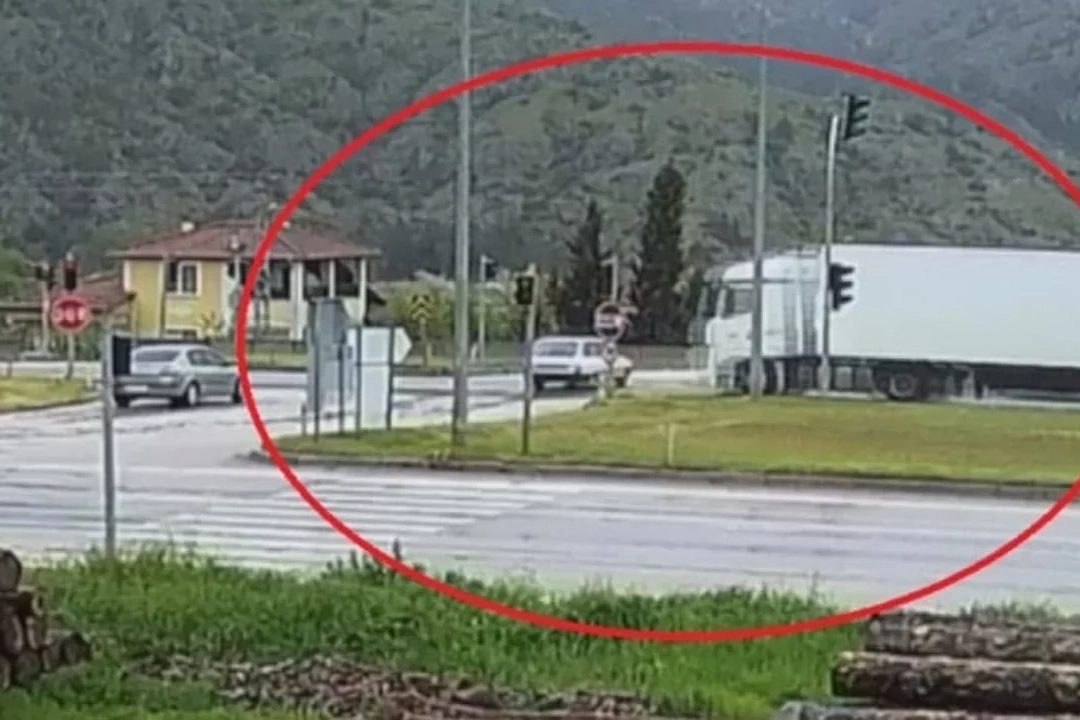 Bu sırada seyir halindeki tırın otomobile yandan çarpması ve çarpışmanın etkisiyle otomobilin savrulma anları görüntülere yansıyor.