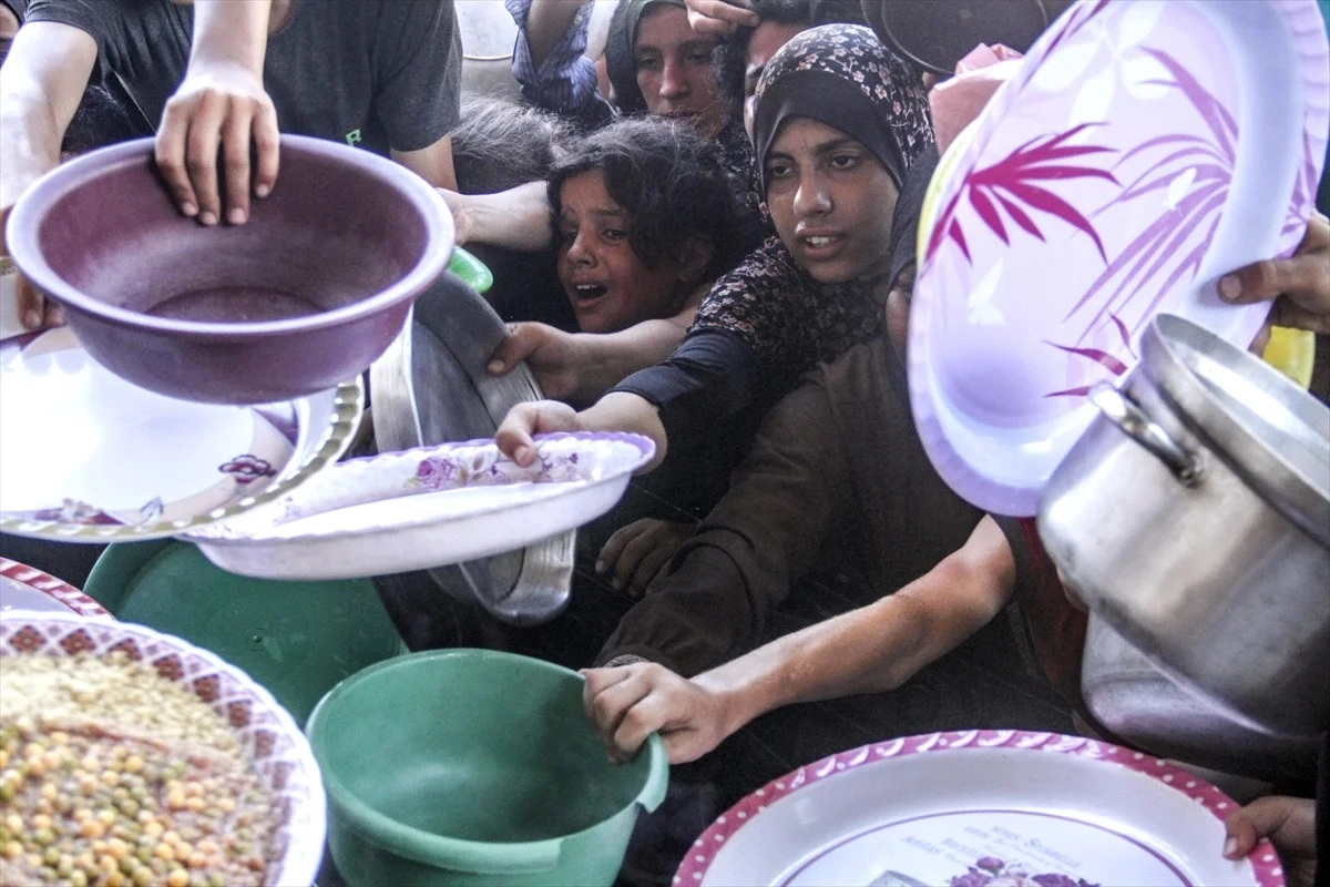 Gazze'ye gelen yardımlara koşan ve bir kap yemeğe ulaşmaya çalışan Filistinlilerin durumu, görenlerin yüreğini parçalıyor.