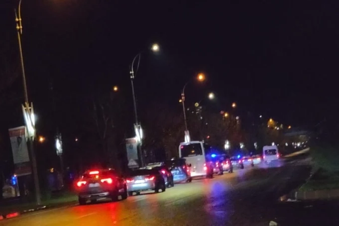 Şehir içerisinden geçen ve yüksek güvenlik önleminin alındığı konvoy dikkat çekti.